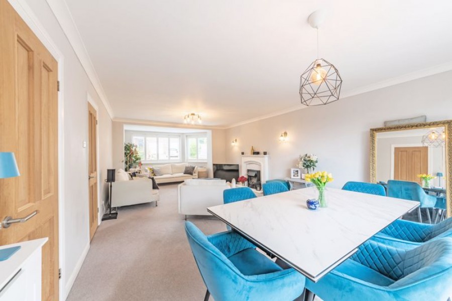 A well-proportioned, detached five bedroom family home situated in a quiet road on the outskirts of Southborough. There is a dual aspect living room with feature fireplace and French doors to the garden. The modern kitchen-breakfast room has a dishwasher, washer dryer, fridge freezer, and a separate utility room. There is also a downstairs cloakroom WC. The master bedroom has fitted wardrobe cupboards and an en suite bathroom with shower. There are four further bedrooms and a family bathroom. The integral garage has light and power. Outside there is an enclosed rear garden which is mainly laid to lawn with a patio area and shed. Driveway parking for two vehicles. Double glazing throughout, gas central heating, EPC band D, council tax band F. Available for long term let. Viewing highly recommended.