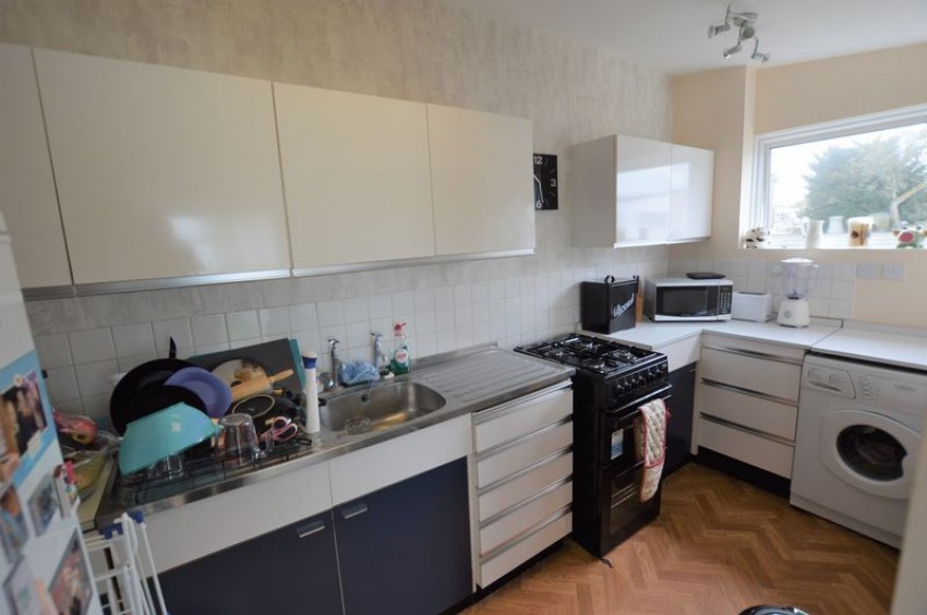 Bright and airy first floor flat. The property benefits from a large living area with patio doors that open onto a private balcony. The kitchen comes complete with a fridge freezer and washing machine. The modern family bathroom is a good size and has both a bath and a separate walk in shower. Both double bedrooms have fitted wardrobes, and there is additional storage cupboards in the hallway. The property has gas central heating and double glazing. The property comes with an off road parking space. Viewing highly recommended.